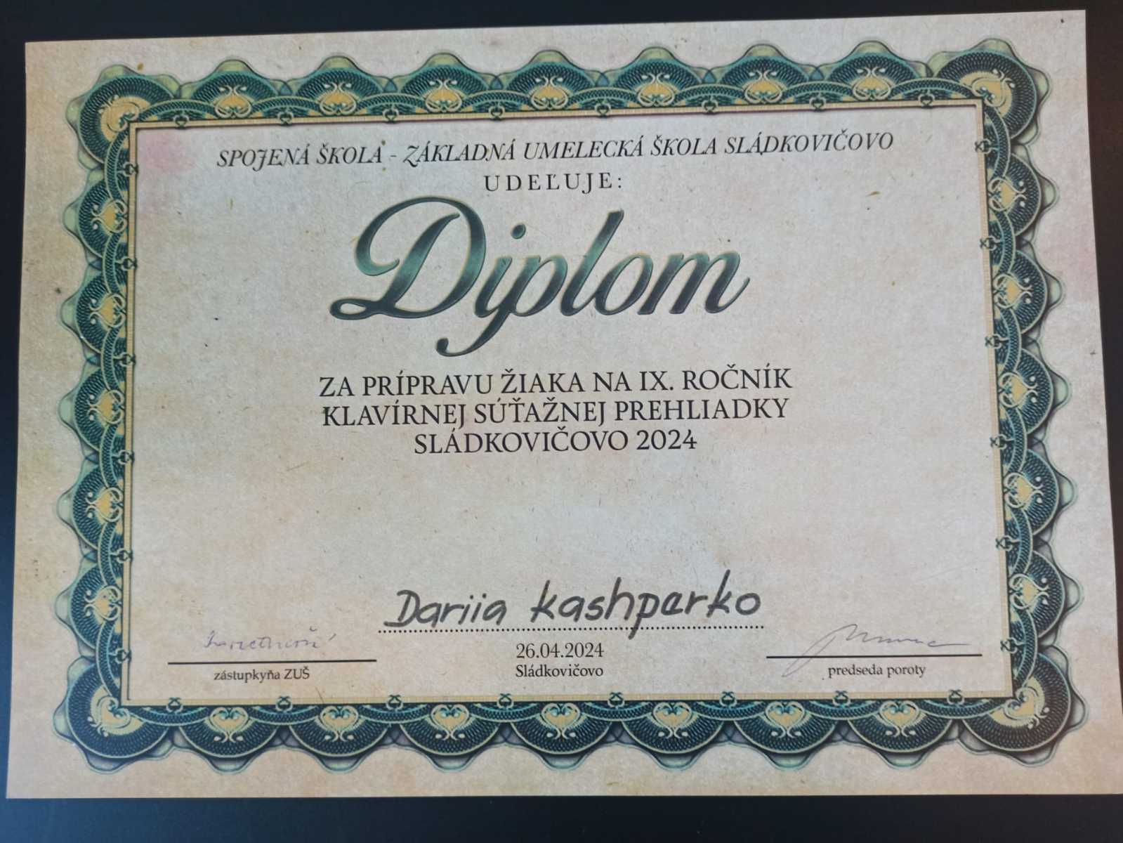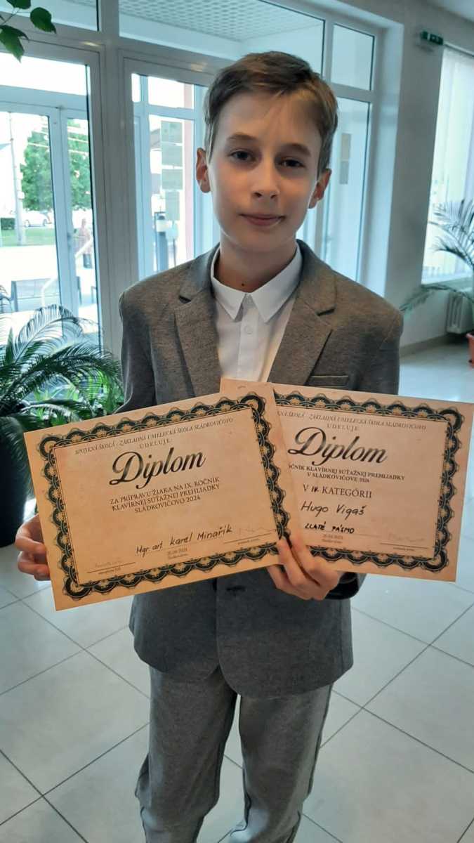 Klavírna súťaž v Sládkovičove5. júna 202425. marca 2026 Gratulujeme našim klaviristom za 2x 1.miesto a 1x 2.miesto a ďakujeme p.učiteľom Darii Kashperko a Karelovi Minaříkovi za výbornú prípravu. Gratulujeme k oceneniam