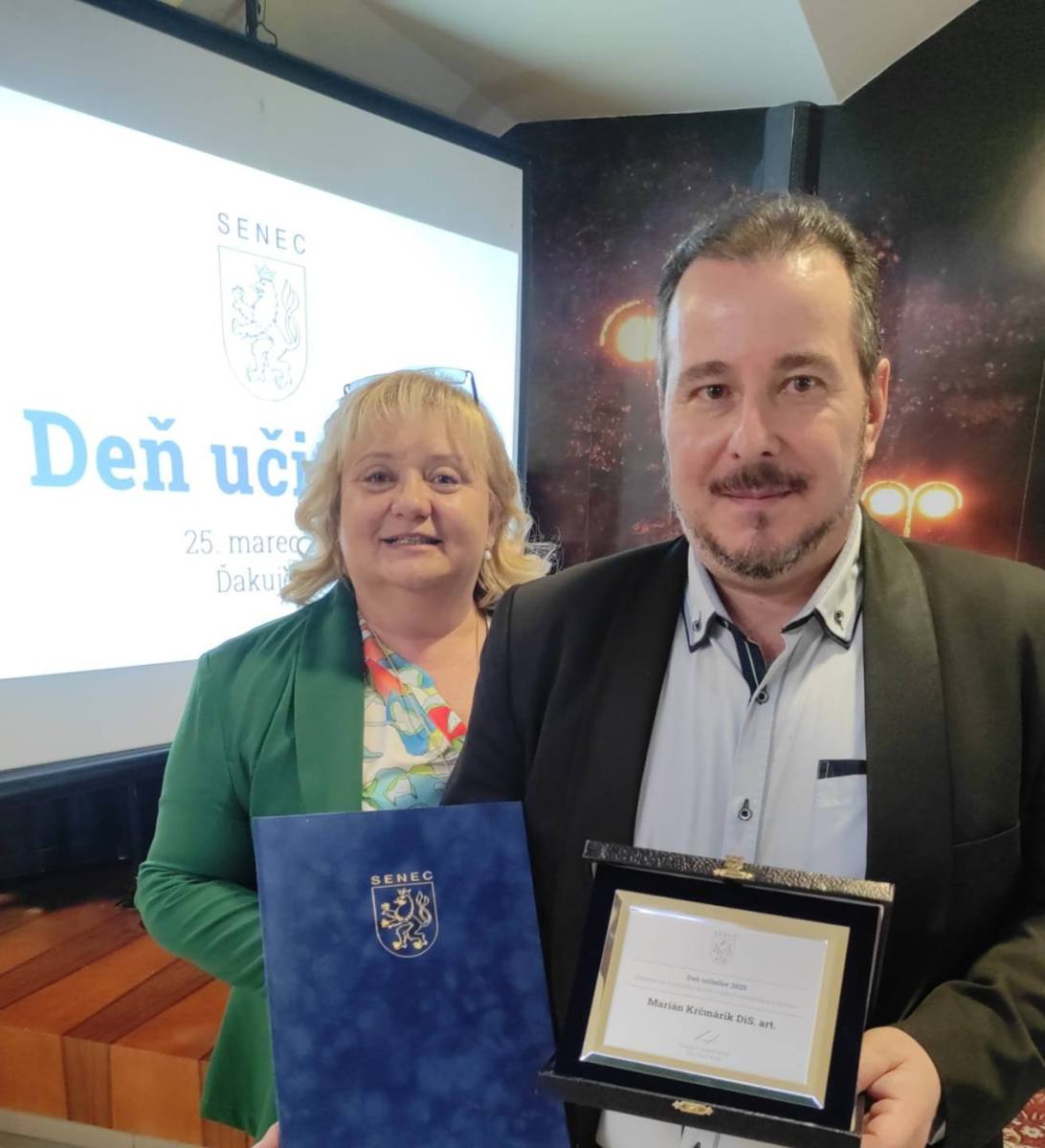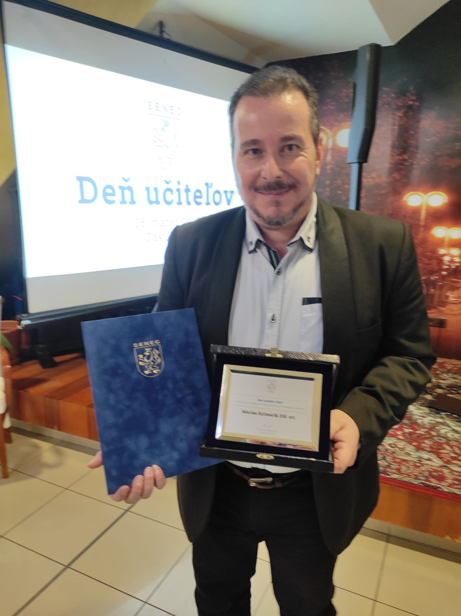 Ocenenie pre nášho pána učiteľa27. marca 202524. marca 2026 K príležitosti Dňa učiteľov bol náš pán učiteľ hry na gitaru Marián Krčmárik, Dis.art. ocenený primátorom mesta Senec. Gratulujeme